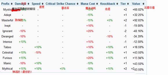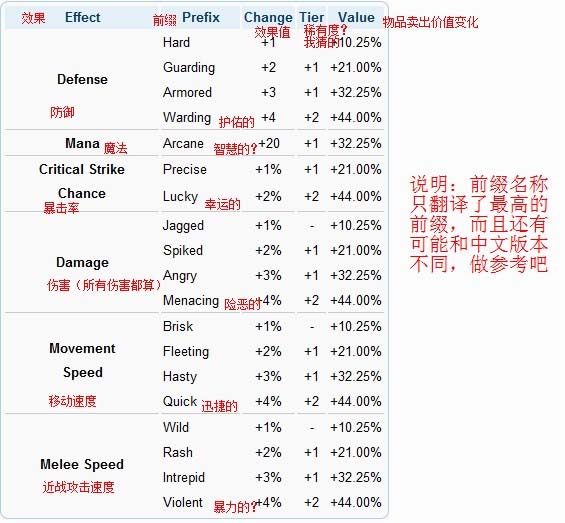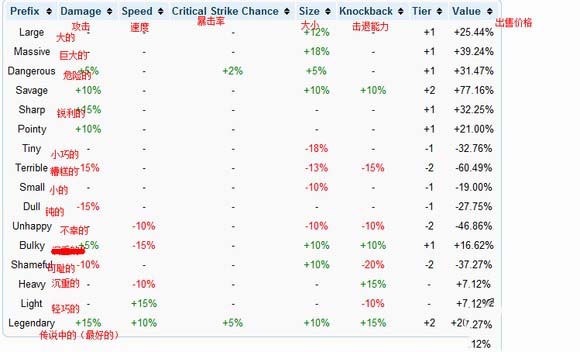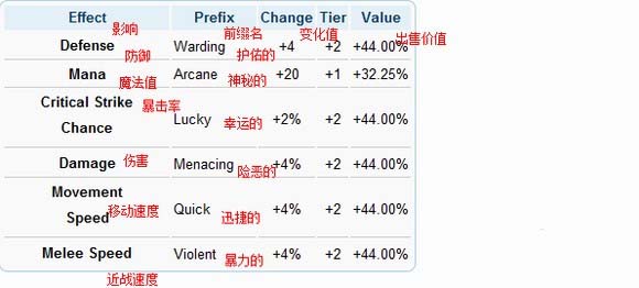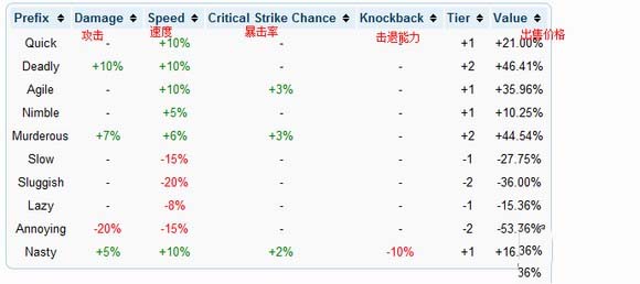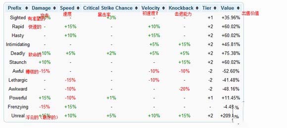 普通前綴,所有武器(近身、遠(yuǎn)程、魔法)都有這些前綴,我就不翻譯了,都不是什么好前綴
