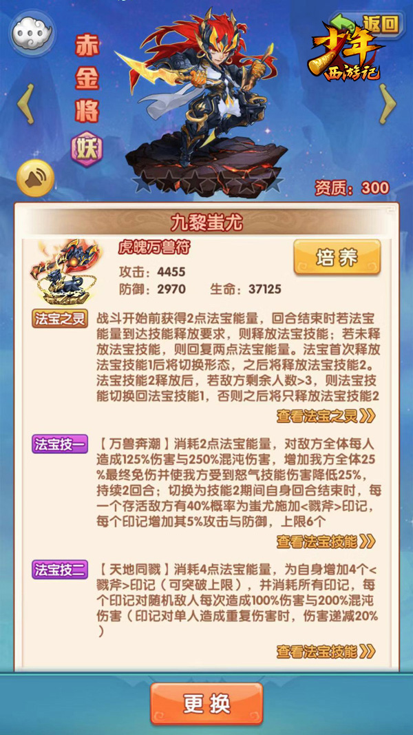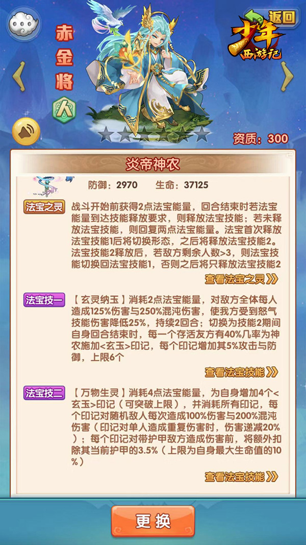 作為全新跨品質神將,三位赤金神將炎帝神農、帝鴻軒轅和九黎蚩尤擁有全游戲中獨有的雙重法寶技能。在戰斗中,先通過第一個法寶技能來積累印記來增加自身的攻擊和防御,再使用第二個法寶技能造成毀天滅地的傷害,以此來重創敵方神將。同時根據敵方場上的神將數量,還能在兩個技能間切換,靈活應對不同的情況,完美掌控戰局走向。