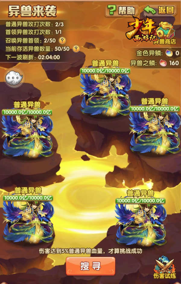 此次“異獸來襲”的玩法更加考驗玩家的硬實力,若想挑戰更高難度的異獸,就必須要有足夠的實力。不想浪費攻打次數,建議先嘗試一下傷害試煉模式來找到適合自己的難度。對于真的強大的玩家來說,只要擊殺異獸就能計入全服傷害排行榜,且可按排名獲得金色異麟和異獸之麟。而這兩個道具可以讓玩家在異獸商店兌換紫金神器圖紙、金色神器等珍稀資源獎勵。
