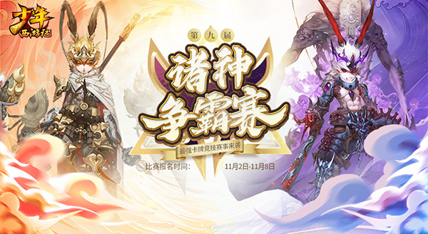《少年西游記》第九屆“諸神爭霸”也將于11月9日正式打響!作為游戲內的最頂級競技賽事,玩家們將在六大戰場同臺競技,通過海選角逐三界霸主榮譽,爭奪變身卡“諸神至尊”以及獨家金色稱號“寰宇傳說”等豐厚獎勵!全新激斗一觸即發,感興趣的玩家可登錄官網獲取更多相關資訊。