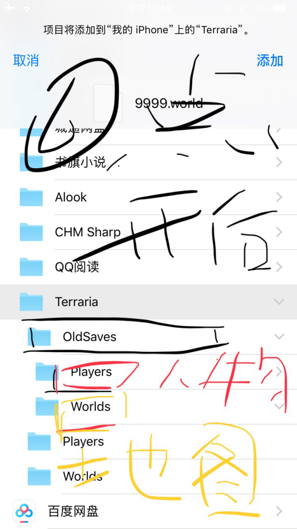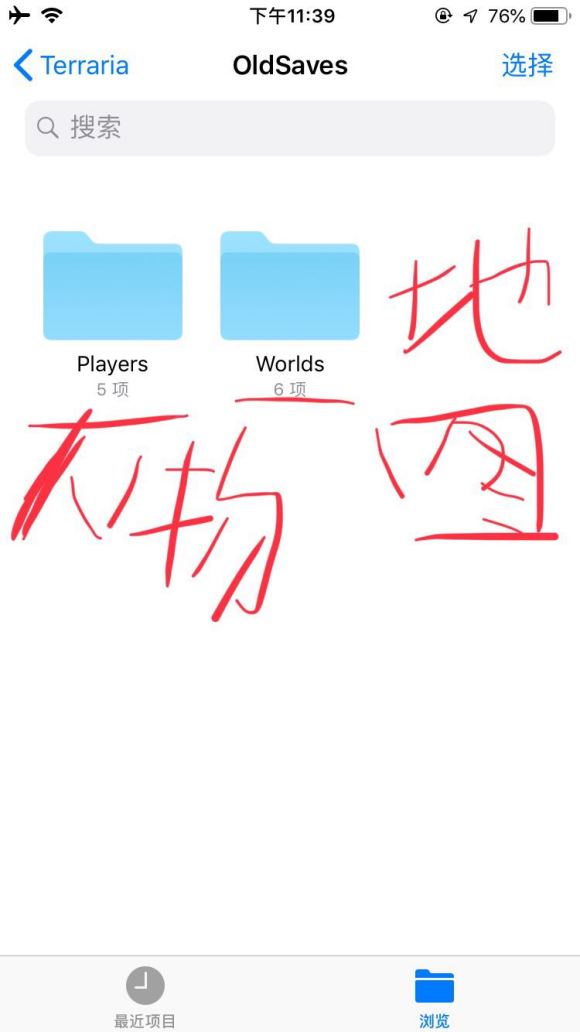 3.泰拉瑞亞文件位置/桌面的“文件”軟件/我的iphone/Terraria/oldsaves/打開后有兩個文件夾/一個是players這個是人物存檔/另一個worlds是地圖存檔