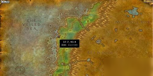 玩家找紅色水晶可以從黑海岸的奧博丁出發,穿過森林向東走,在山腰上就可以看到紅色水晶了,具體的位置坐標為(47.3,48.7)。