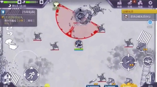 山賊大頭目有三個技能,其中一個是扇形攻擊,這個攻擊范圍比較廣,我們要提前走位躲開攻擊,如果大家發現移動較慢,可以按住右下角的“鞋子”增加移動速度來多開扇形攻擊。