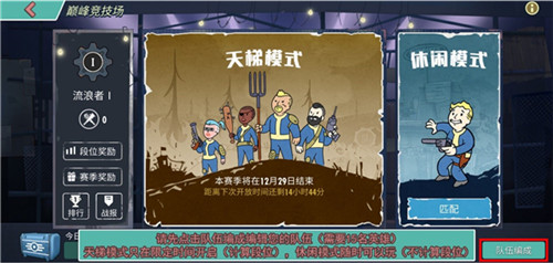 首先我們在避難所點開競技場的圖標(biāo),會看到出現(xiàn)兩個選項,左邊的“戰(zhàn)區(qū)競技場”是原來的競技場,右邊的“巔峰競技場”就是本次要介紹的新內(nèi)容。