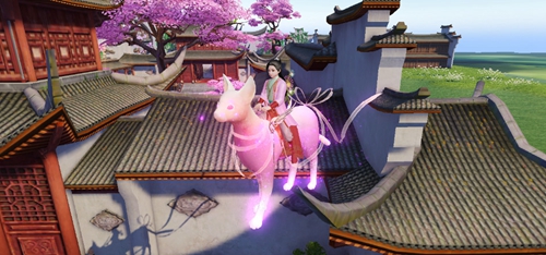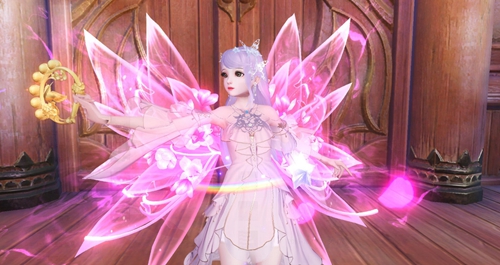 最近《天下》手游屢屢有人宣稱自己偶遇仙子,傳得神乎其神。為了了解事情的真相,大荒小記者特地趕往傳言源頭——神機島,準備一探究竟!誰知,方一踏上島嶼,果然就見一紫發美人在竹林間翩然起舞。背后一對玲瓏剔透的粉紫色蝴蝶羽翼璀璨奪目,顯得少俠身上那件染作薰衣草色的華麗舞服“環佩叮當”輕如薄煙一般,整個人宛如籠罩在云中,似真似幻!還未等小記者斗膽上前一觀,只聽仙女手中的“金雀鈴”飾品發出陣陣清越之音,讓人越發沉醉其中。