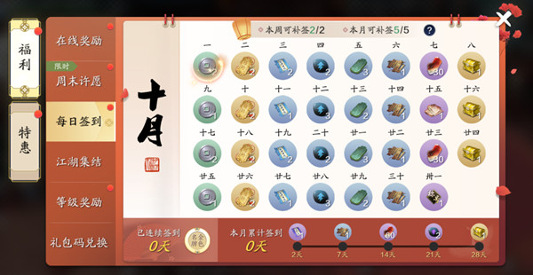 每日登錄,參與簽到活動,即可領取豐厚獎勵!俠影招募令、情緣寶匣、豐厚養成材料送不停!連續30日簽到還可以激活金色名牌,少俠不要錯過哦!