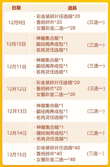 更能拿到豐厚的彩 金裝碎片任選箱、魯班碎片、女魃彩 金二選一、神器集合箱、藏經(jīng)閣養(yǎng)成包、名將靈任選箱等資源哦~