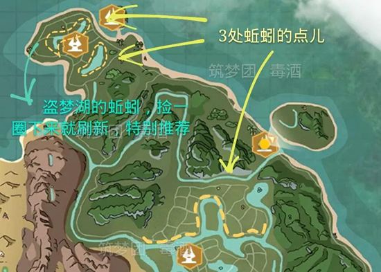 精靈魚:最難獲得的材料,推薦去圖中的幾個地點釣,還有其他幾個地方。