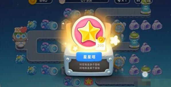 2、接著我們開局就用贈(zèng)送的星星塔直接升級(jí)即可清除圈圈障礙物,再放置星星塔。