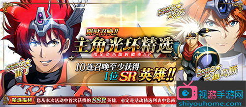 歷代的主角齊聚一堂,手持圣劍,英雄的輝光照耀四方!新召喚卡池登場,SSR英雄雷丁、艾爾文、蘭迪烏斯出現概率提升!作為《夢幻模擬戰》系列中每一代最為閃耀的英雄,“主角光環”加持可非浪得虛名!無論是反擊無雙的雷丁還是問鼎巔峰競技場的蘭迪烏斯,亦或者“屠龍小能手”艾爾文,他們都活躍于各個陣容之中且發揮著重要作用。本次召喚還帶有精選福利,從本次活動中首次抽取到的SSR英雄,必定是活動精選列表中你尚未擁有的SSR英雄,機不可失喲~
