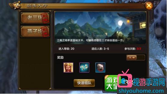 副本方面,老三環和燕子塢,每個副本每天可以刷三次,老三環主要是刷裝備,燕子塢刷材料,總而言之,想要好的裝備,這兩個副本每天都要刷完。至于裝備提升方面,小編下次再作介紹。