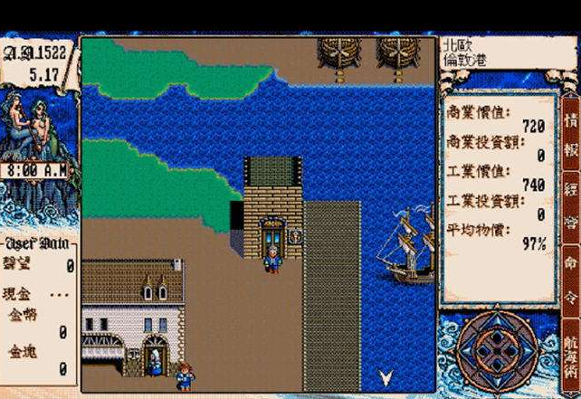 剛開始玩的時候我想的是去打別人,可是戰斗力不足經常被其他人暴揍,因此和許多勢利和港口關系鬧得很僵。很多年之后我才知道原來大航海時代3是沒有劇情的,這也給了玩家很大的自由發揮空間。