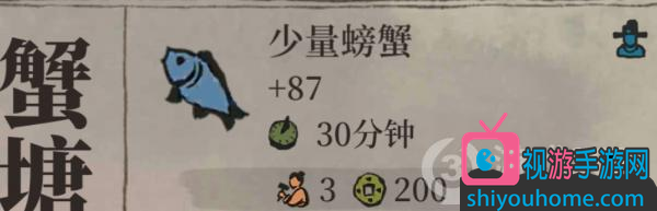 3、推薦刷蟹方法,建造幾個抓螃蟹的池子(產肉的池子),只升一級,用松江府的各路大佬輪番采集。一級的池子只需要200銅板,二十碗飯。這樣比較節約資源,而且更節約時間。我用的祝枝山(已滿級)基本上刷十次有三到五次是有螃蟹產出的