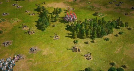 游戲設計了能夠遮蔽視野的策略玩法,玩家能夠利用大地圖上的樹林,將軍隊隱匿,可以讓敵方丟失我軍的視野,這與MOBA游戲中的蹲草戰術非常相似。而且樹林地形的出現,也讓戰局變得變幻莫測,敵我雙方的實力不再可視化,玩家必須根據情報來推斷敵軍的動向。多樣的策略選擇,也讓戰爭瞬息萬變。