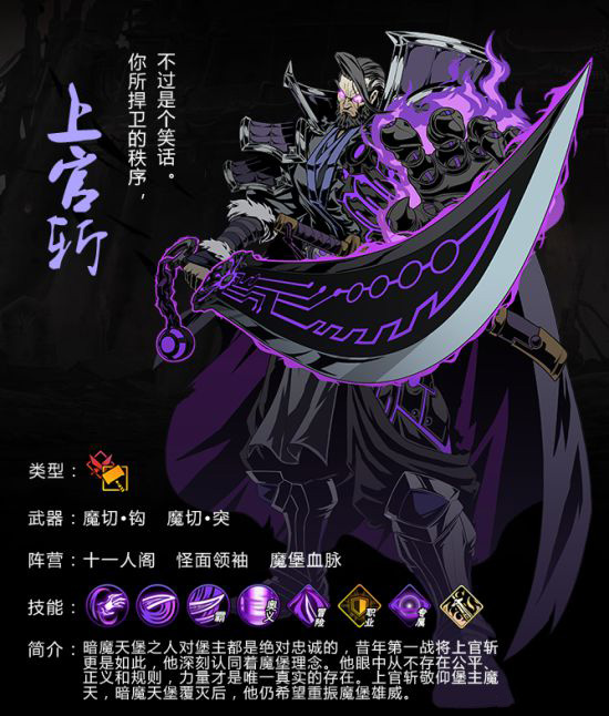 在游戲中,上官斬是第一個出現(xiàn)的十一人閣,不僅外表造型酷炫,戰(zhàn)斗力也十分迅猛,一方面兩個屬性讓他在戰(zhàn)斗中輕松自如,另一方面攻擊范圍也很廣,再被動加傷的影響下,一刀就能秒掉一片人。即便遇到了有克制效果的瓷兒,一般也無法抵擋上官斬的威力。所以,如果有幸得到了上官斬,不要猶豫,把你所有的資源都投給他優(yōu)先培養(yǎng)。
