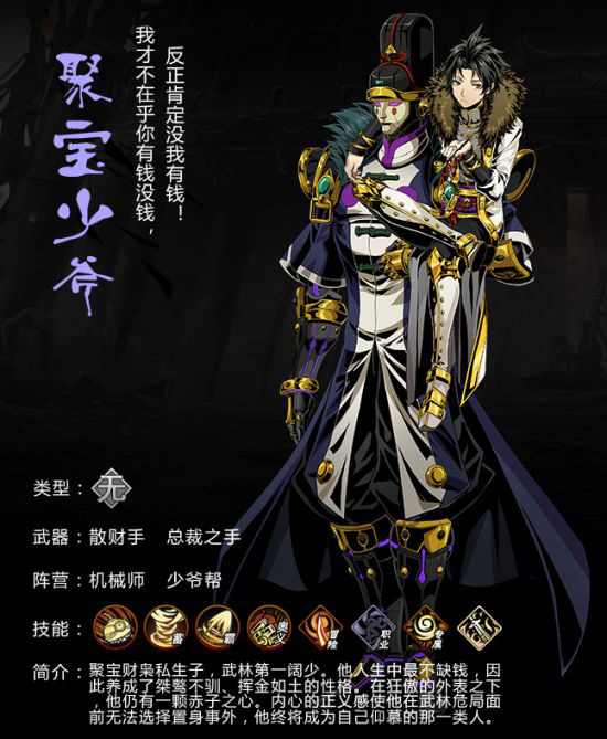 在游戲中,聚寶少爺是通過充值贈送的角色,屬于無屬性,操作上也十分簡便,遠距離撒錢,不斷消耗對手即可造成不錯的傷害效果。被動虛無是聚寶少爺?shù)囊淮蟊C寄?,在危難時刻可以保護自己躲過致命一擊,甚至借此強勢翻盤。如此實用的角色,是平民玩家或者首充玩家必不可少的。