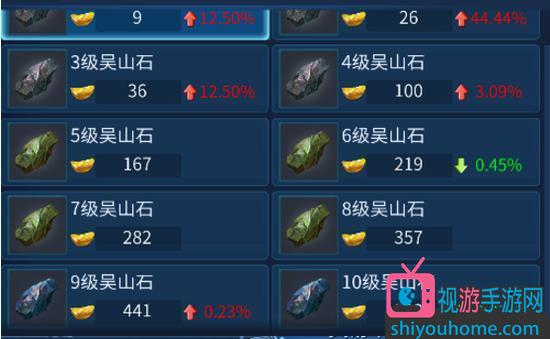 價錢過高的物品,不提議太早的購買,提議先以賣主導,等價錢降下來再開展寶石升級,吳山石加強,靈獸技能升級等。