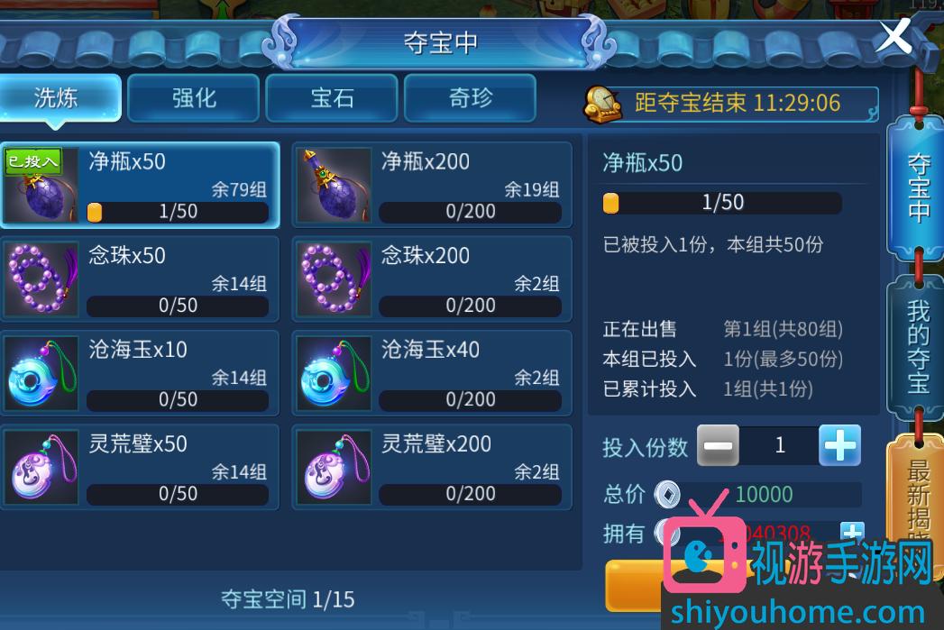 奪寶玩法小編非常少去參加,但是以前有去一口價買入凈瓶又有吳山石這種游戲道具,凈瓶一口價均勻1個瓶子一萬一的價錢。而吳山石,假如玩家想上15又不愿花靈玉的話,只可以經過銀兩買入和元寶這一些錢幣的聯合。說真話,小編總是中意步步為營,并討厭拼概率的模式,因為小編自認為算作是臉黑的那一隊列,因此拼概率的從來不去參加。