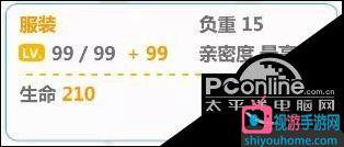 這件衣服的血量隨著升級減少,在滿級時只有380生命值,追加99和親密50之后僅有210生命值,可謂非常特殊。