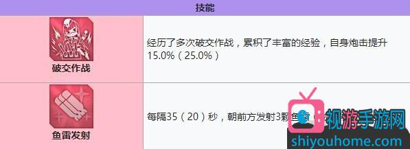 沙恩霍斯特格奈森瑙是能裝備輕巡主炮的鐵血戰(zhàn)巡,缺點是副炮底座只有1,限制了打自爆能力。二技能和沙恩霍斯特一樣為魚類發(fā)射,但是傷害只能清個雜魚了。破交作戰(zhàn)提供了25%炮擊加成,自身輸出能力不弱,但是無奈戰(zhàn)巡中有胡德,天城。