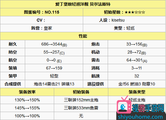 貝爾法斯特滿(mǎn)技能能提升起火概率3%,而愛(ài)宕是8%,相比之下不如愛(ài)宕。