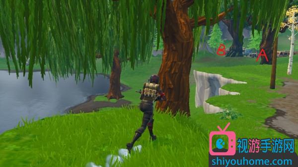 圖中A,B兩處點位,出現敵人幾率非常大,因為A點樹木的后面是一處汽車聚集地,我們進行轉移的過程中,在營地進行搜索的玩家普遍都比較多,我們移動過程中最好沿著懸崖行走,敵人攻擊我們可以瞬間進入下面,讓敵人不知道我們的位置,在敵人的視野盲區搭建堡壘的地基,這樣向上進行搭建堡壘,就算上方堡壘被擊毀,我們使用地基還可以瞬間搭建出更大的堡壘,進行反擊。