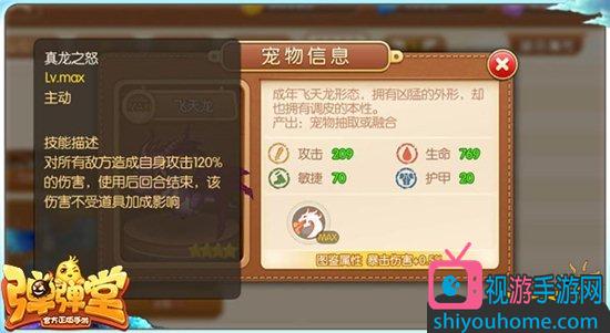 飛天龍:主動技能【真龍之怒】,對所有敵方造成自身攻擊120%的傷害,使用后回合結(jié)束,該傷害不受道具加成影響。