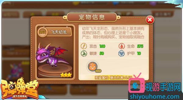 2星寵物飛天雛龍:這款寵物同樣攻擊加成很高,相對于火槍雛龍,它將敏捷加成替換為護甲,可以帶來更強的防御;