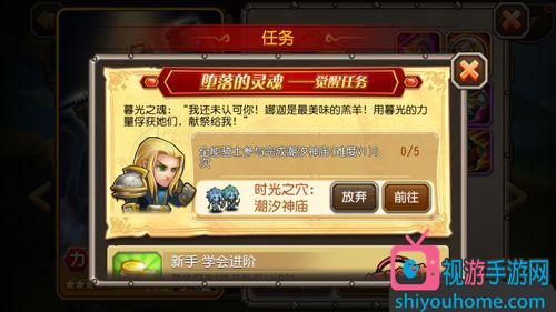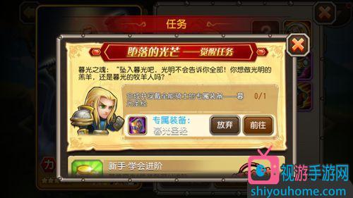 覺醒任務為英雄合成覺醒裝備后即可開啟覺醒任務。全能騎士覺醒首先要完成難度6潮汐神廟五次。相信對于戰隊已經90級的隊長們來說不是什么難題。第三節任務則是全能騎士參與完成第14章巨龍巢,且無人陣亡。這對于全能輔助的超級奶爸來說無人死亡是妥妥的。
