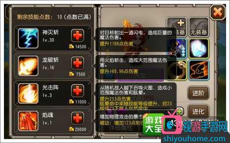 技能加點:技能加點上,大招單點十分給力,必須點上去;然后點龍破斬,清圖快速;最后是光擊陣,控制傷害都不錯;至于焰魂,錢沒地花的就點吧。