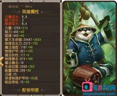 五星的熊貓有9.9的力量成長和8.4的敏捷成長,在可以作為前排肉盾的同時,還能有較高的物理攻擊力,但高力量成長和高敏捷成長隨之帶來的是極低的智力成長,3的智力成長,和低得令人抓狂的魔法抗性。