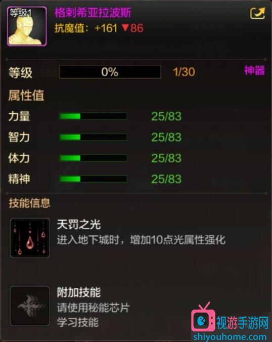 天罰之光:進入地下城時,增加10點光屬性強化。