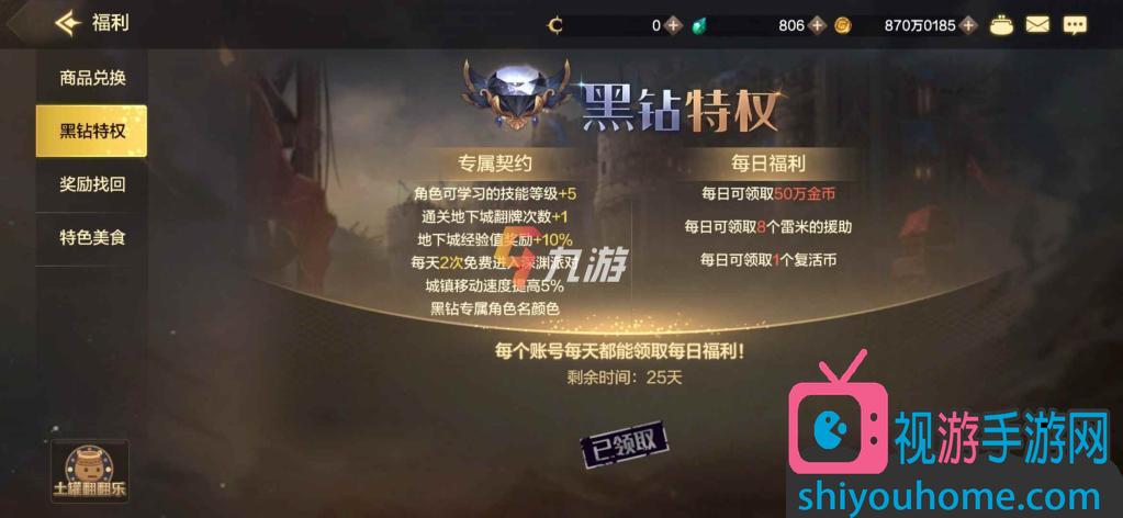 當(dāng)玩家擁有黑鉆的福利后,每日登陸即可獲得50w金幣的獎勵,是游戲內(nèi)獲取金幣最重要的途徑。當(dāng)然這個福利賬號下的角色只能領(lǐng)取一個,所以大家在領(lǐng)取的時候要保證當(dāng)前角色是自己缺少金幣的,不然把金幣領(lǐng)取到小號上面可就很虧了。