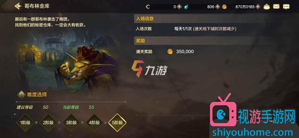 挑戰(zhàn)每日副本哥布林金庫,即可獲得大量的金幣獎勵。在達(dá)到5階段以后每次都能獲得35w金幣的獎勵,該副本中的哥布林首領(lǐng)傷害不高,即使是劇情裝備的玩家也可以輕松過關(guān),覺得挑戰(zhàn)麻煩的話還能一鍵掃蕩,不過只能獲得50%的獎勵。