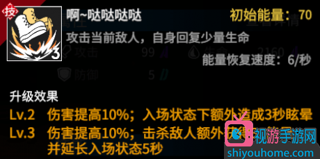 LV.3:傷害提高10%;擊殺敵人額外獲得30能力,并延長入場狀態5秒
