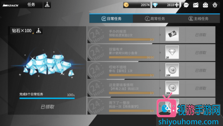 鉆石的獲得方式多種多樣,其中最主要的來源就是推圖,我們每推幾張圖就可以獲得一部分鉆石,其中每次領取可以獲得100鉆石,其中完成每日任務可以獲得100鉆石,周常任務400鉆石,大大小小的收集任務、成就任務,還有活動任務都可以獲取源源不斷的鉆石。