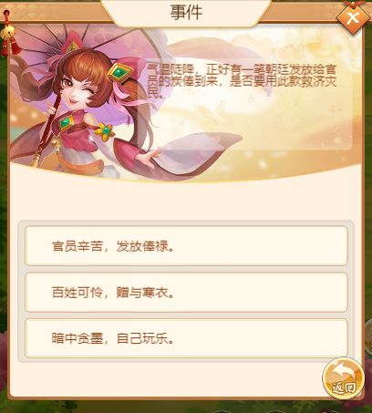 人物事件:如下圖,這種人物事件隨便答,每個答案都有一份獎勵,不固定,隨機(jī)的,隨便答就好了。