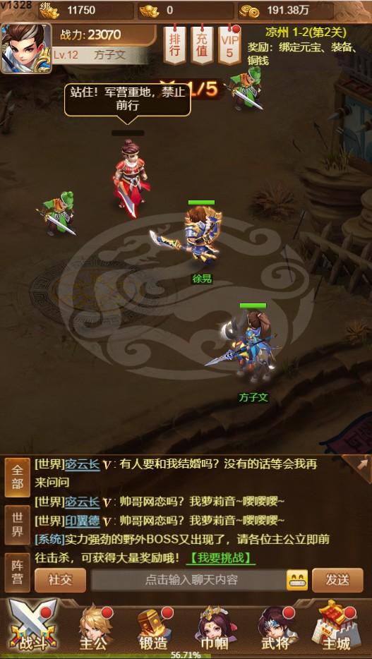 游戲的主線地圖非常豐富,玩家需要從涼州出發,再到定軍山,長安,東興等戰場pk,通過完成挑戰任務來獲取相應的裝備資源。