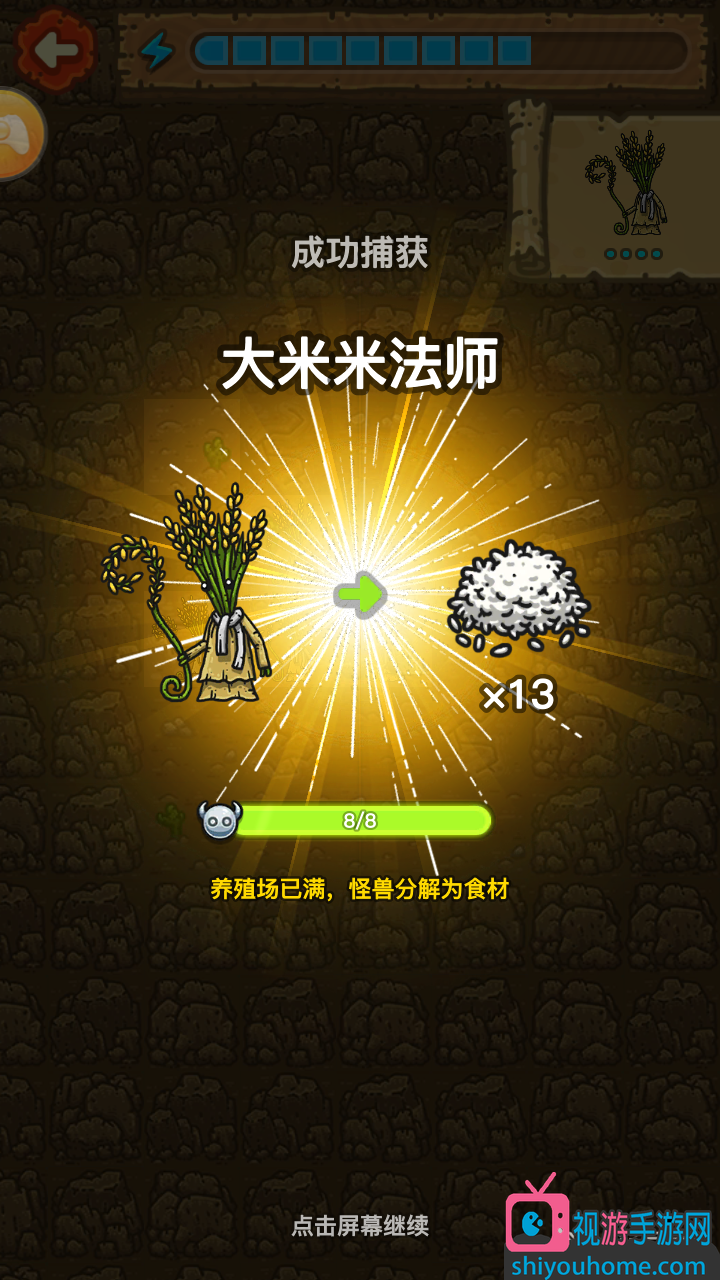 當(dāng)我們捕抓到足夠數(shù)量的大米米法師,養(yǎng)殖場(chǎng)就會(huì)升級(jí)或是把多余的大米米法師分解成大米,這就是大米快速獲得的方法。