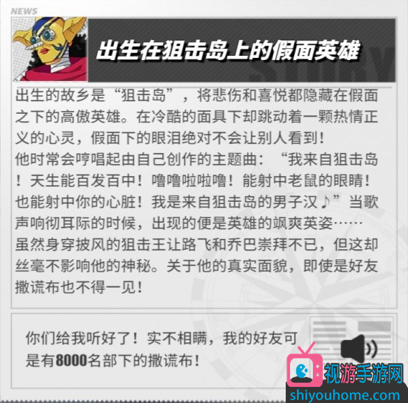 航海王熱血航線狙擊王屬性介紹,航海王熱血航線狙擊王好不好由視游網提供,主要幫助大家更加清楚的了解這個人物角色!