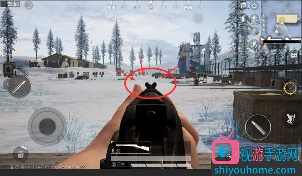 上圖是win94的機瞄視野,該槍雖然沒有辦法裝配瞄準鏡,但是槍械默認的機瞄視野卻是十分地優秀。Win94的“倒立三角形”缺口式機瞄為玩家提供了開闊的機瞄視野和射擊時的精準度。結合著槍械自身出色的穩定性和較快地射速,win94在玩家落地初期絕對是一個不錯的選擇。