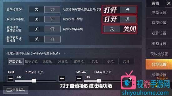 我們需要開啟收起拾取列表時停止自動拾取、自動拾取三級包功能,并且關閉自動拾取瞄準鏡功能。