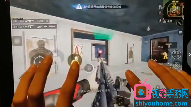 在兩指操縱的基礎上,不少硬核玩家又開發出了3指操作方法,將瞄準的職責交給的左手或者右手的十指,這樣就能一邊射擊一邊移動了。在高端局,這種指法是相當常見的。
