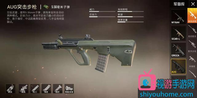AUG這把槍也是空投中的專屬武器,但是AUG一直不被玩家看好,因為這把槍的手感很奇怪,很多玩家都玩得不舒服,并且被玩家成為詛咒之槍,拿到這把槍的玩家都無法吃雞,所以每次去舔別人舔剩的空投都能發現里面有把AUG,其實AUG這把槍的穩定性相當可以,而且近中距離壓槍要比滿配的M4還要穩。