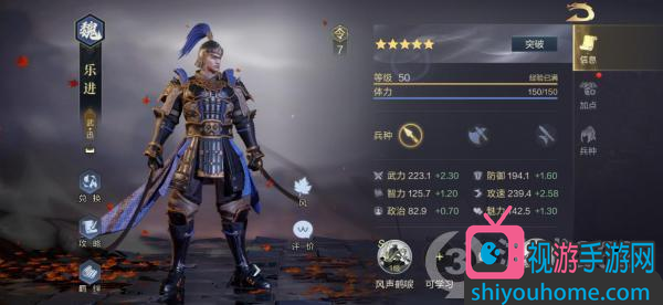 樂進(jìn)在游戲中的武將定位為“武”、“迅”,所以比較適合組建成連擊隊。從滿級后的各項屬性來看,223.1的武力夠得上武將中的一流水準(zhǔn),239.4的攻速附帶2.58的成長,在整個游戲中都鮮有對手。因此可以看出,樂進(jìn)的輸出實力非常可觀,加上其余各項屬性都沒有明顯的短板,所以非常適合作為隊伍的主力輸出武將出場。