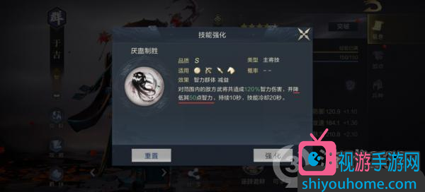 于吉的主將技是“厭蠱制勝”,采用了《三國演義》中蠱惑孫策的典故?!皡捫M制勝”可以對范圍內敵方武將造成120%智力傷害,并降低其50點智力,持續10秒。無論是在對抗智力型武將的時候,還是與武力型武將戰斗,降低100點智力都可以造成極為有效的減益效果。