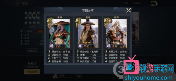 于吉、張角、華佗三人組隊,能觸發羈絆“惑世通神”,大幅提高武將的閃避能力。于吉作為主將,其主將技“厭蠱致勝”能降低敵方武將的智力,加上這支隊伍以智力輸出為主,是個非常不錯的增傷手段。攜帶S級武技“士別三日”,其神算加成能大幅提高于吉的輸出?!俺碎g擊暇”則自帶一定的治療效果。華佗作為副將,能夠提供治療和續航能力,張角則能提供控制效果。但是要注意的是,這三名武將的專屬兵種都是弓兵,一旦被近身,很容易會被擊殺。