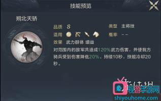 滿級效果:我方每有一名騎兵武將,就要進一步提高我方全體武將的10.0% (觸發時受到的傷害無效)。 每有一名兵武將,就有全體真我方武將的10.0%破甲(無視目標一定比創防御和武力減傷),破勢(無視目標一定有一定比例的智力和智力減傷)。