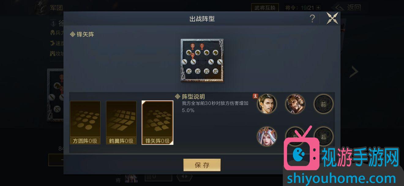 鋒矢陣:我方全軍前30秒對敵方傷害增加5%。