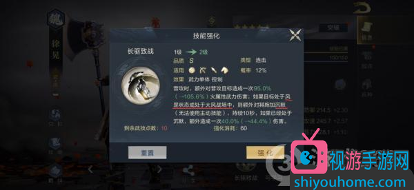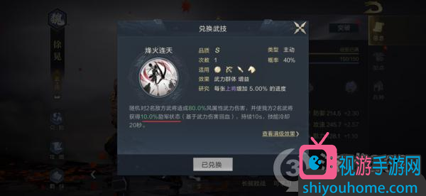 分解徐晃后,獲得的技能是主動(dòng)技“烽火連天”。可以對(duì)敵方2名武將造成傷害的同時(shí),為我方2名武將添加勵(lì)軍效果。是結(jié)合進(jìn)攻與回復(fù)的強(qiáng)力武技。